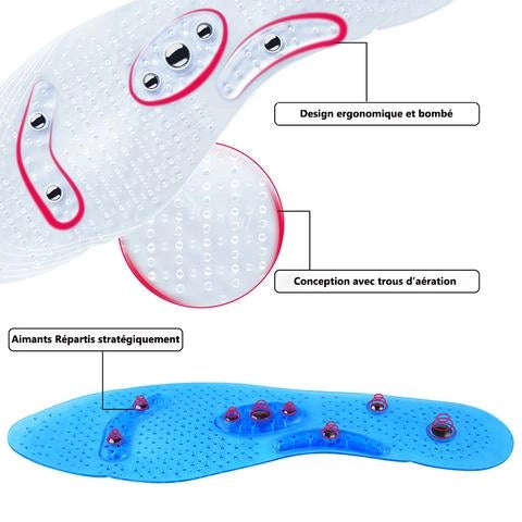 Conçues avec des aimants intégrés et stratégiquement positionnés, nos semelles magnétiques offrent une expérience de port agréable et discrète. Les aimants diffusent une énergie bienfaisante qui accompagne chaque mouvement, créant une sensation de confort et de légèreté. Portez-les au quotidien dans vos chaussures préférées, et laissez la combinaison de l'acupuncture et de la magnétothérapie s'occuper de votre bien-être physique.